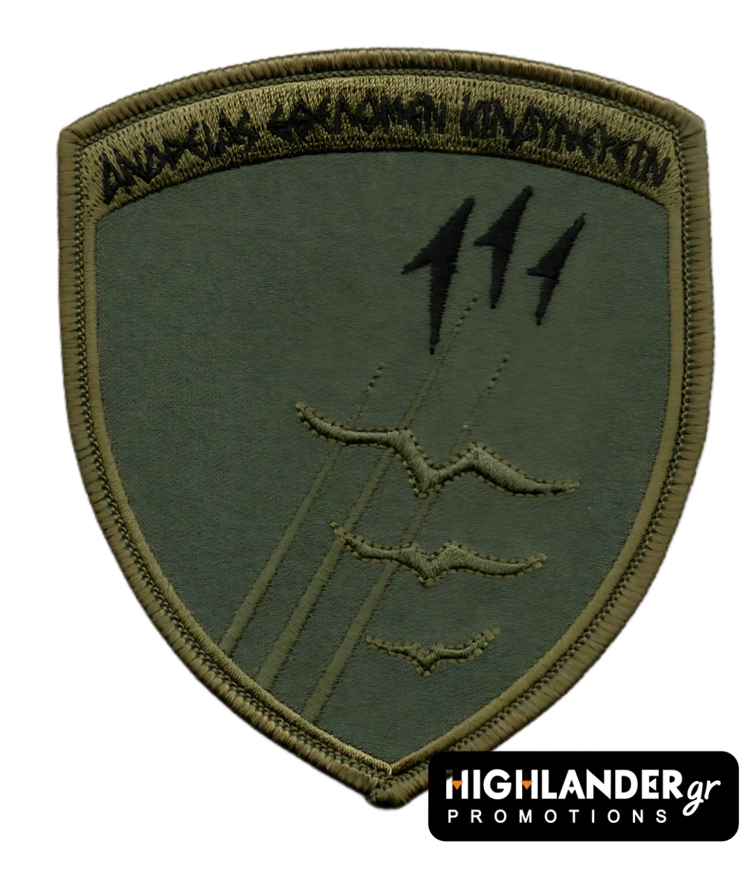 Διακριτικό και επιβλητικό κεντητό σήμα της 111 ΠΜ σε παραλλαγή low visibility, σχεδιασμένο για επιχειρησιακή χρήση, όπου το χαμηλό προφίλ είναι απαραίτητο.