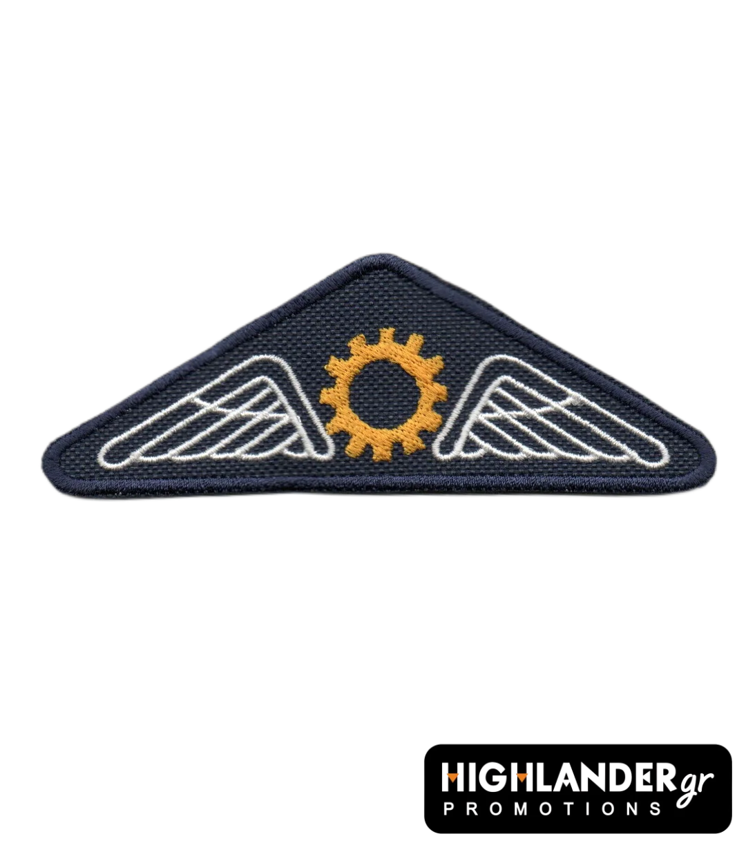Η Πουλάδα Ιπταμένου Μηχανικού της Πολεμικής Αεροπορίας αποτελεί το διακριτικό σήμα που συμβολίζει τον κρίσιμο ρόλο των μηχανικών πτήσης. Ο συνδυασμός φτερών και γραναζιού εκφράζει τη συνεργασία της τεχνικής υποστήριξης με την αεροπορική ισχύ, ενώ η κλασική μπλε απόχρωση με το χρυσό γρανάζι προσδίδει παραδοσιακό χαρακτήρα. Πρόκειται για αυθεντικό κεντητό σήμα από την Highlander Promotions, κατάλληλο για στρατιωτικές στολές, τζάκετ πιλότων αλλά και για συλλογές φίλων της Πολεμικής Αεροπορίας και της αεροπορικής ιστορίας.