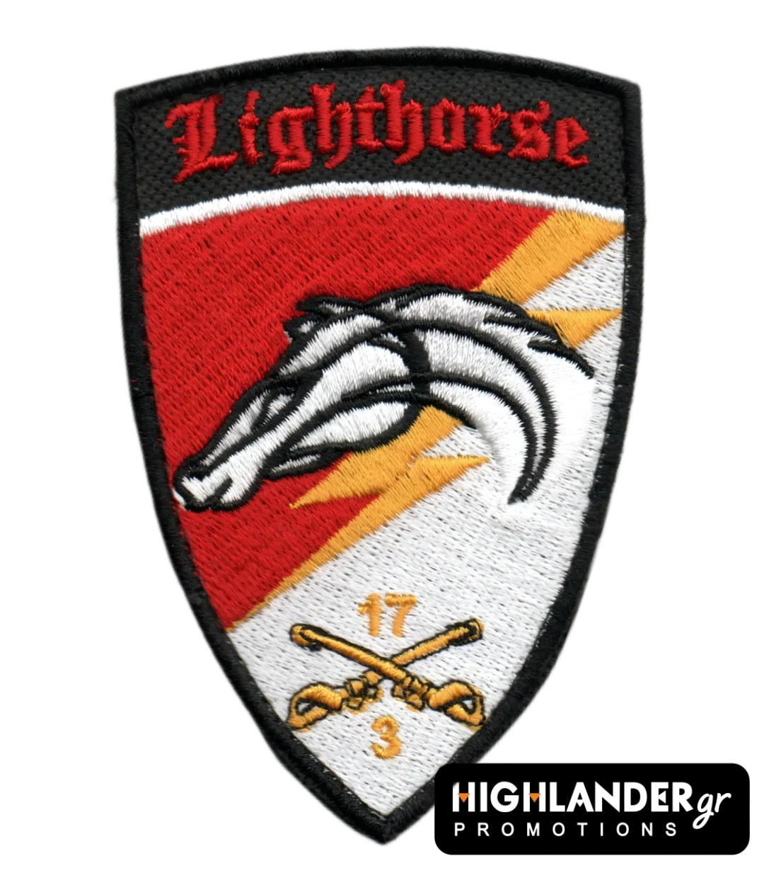 Το εντυπωσιακό κεντητό σήμα του 3ου Μοίρας του 17ου Συντάγματος Ιππικού των ΗΠΑ (3rd Squadron, 17th Cavalry Regiment – “Lighthorse”) με έντονα χρώματα και δυναμικό σχεδιασμό. Στο επίκεντρο, το κεφάλι αλόγου με φόντο τις αστραπές υποδηλώνει ταχύτητα, ισχύ και επιθετικότητα. Ένα σύμβολο αφοσίωσης και μαχητικής υπερηφάνειας για συλλέκτες και λάτρεις της στρατιωτικής ιστορίας.