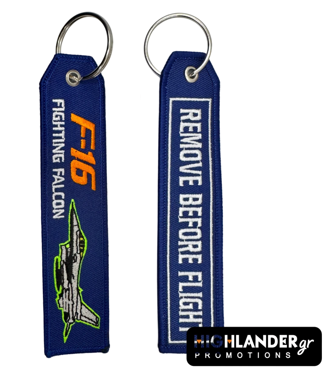 Show your passion for military aviation with this premium embroidered “Remove Before Flight” style keychain. Dedicated to the legendary F-16 Fighting Falcon, this durable flight tag is available in two striking colors.