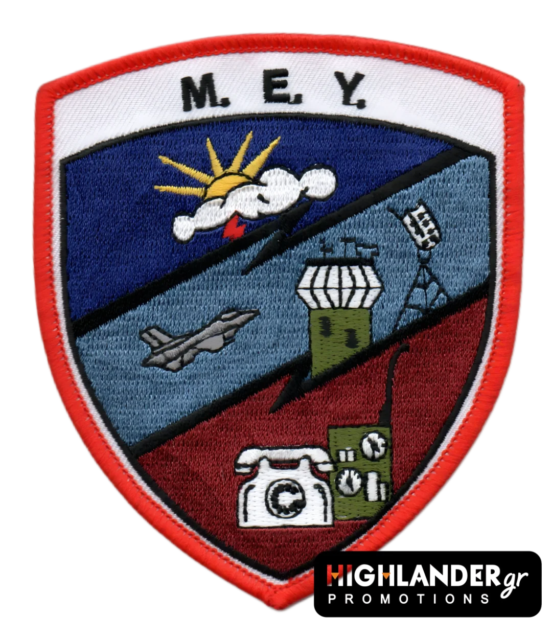 Επίσημο patch της Μετεωρολογικής Υπηρεσίας (Μ.Ε.Υ.) της Πολεμικής Αεροπορίας, που αποτυπώνει τον πολυσύνθετο ρόλο της στην υποστήριξη πτήσεων και επιχειρήσεων.