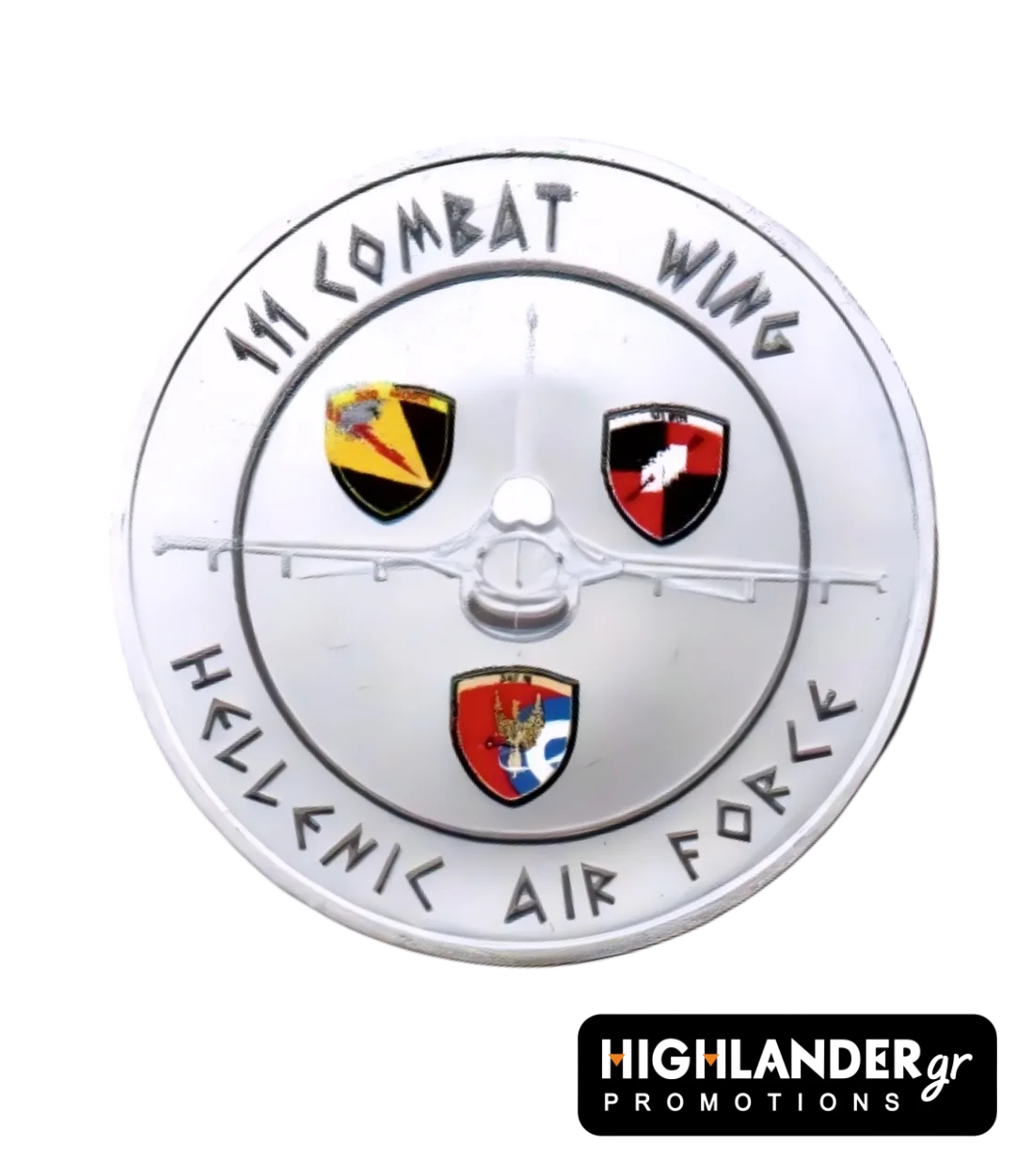 A premium silver-plated challenge coin dedicated to the 111 Combat Wing (111 CW) based in Nea Anchialos, the “vipers’ nest” of the Hellenic Air Force.