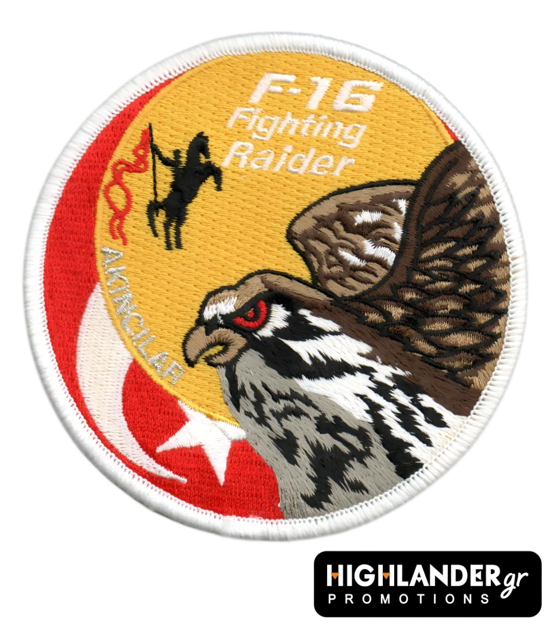 A striking embroidered patch inspired by the Turkish Air Force, featuring the legendary F-16 Fighting Falcon. A fierce falcon dominates the design, symbolizing strength and speed, backed by the crescent and star of the Turkish flag. The words “F-16 Fighting Raider” and the “Akıncılar” text give this patch a bold and authentic military feel. Perfect for collectors and aviation gear lovers.