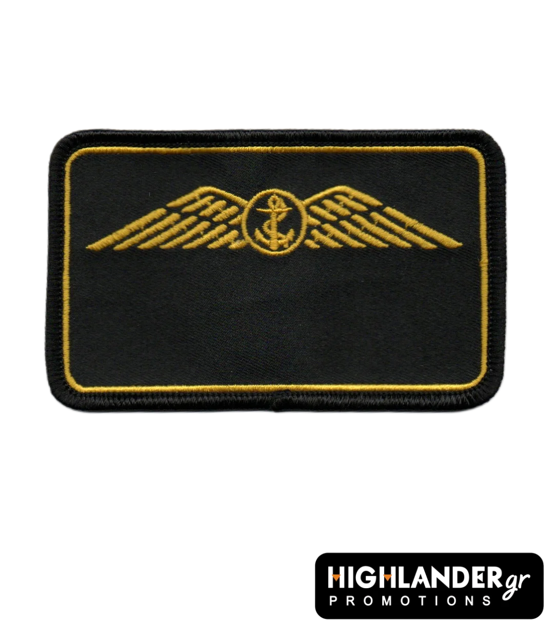 Official Hellenic Navy Pilot Wings patch featuring the classic gold anchor-and-wings emblem on a black background.