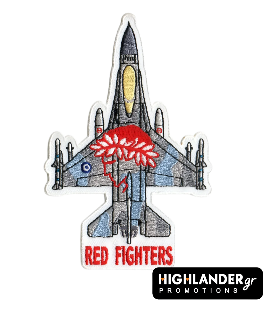 The RED FIGHTERS patch commands attention with the striking red Olympiakos emblem – a symbol of power and legacy. Featuring a top-down view of the F-16 in HAF camouflage tones, this patch merges athletic spirit with aerial dominance. A bold piece for collectors and supporters of the Hellenic Air Force.