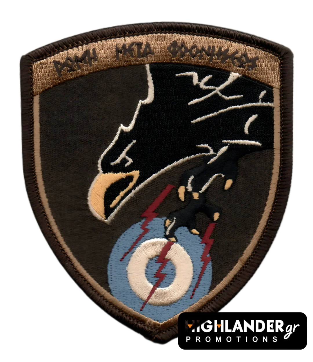 Above, the phrase “ΡΟΜΗ ΚΑΤΑ ΦΟΝΙΣΣΗΣ” (Strength Against the Slayer) represents the command spirit of the ATA: leadership, vigilance, and swift response in the skies.